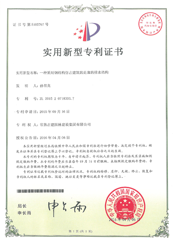 一種采用鋼結(jié)構(gòu)仿古建筑的走廊的排水結(jié)構(gòu)